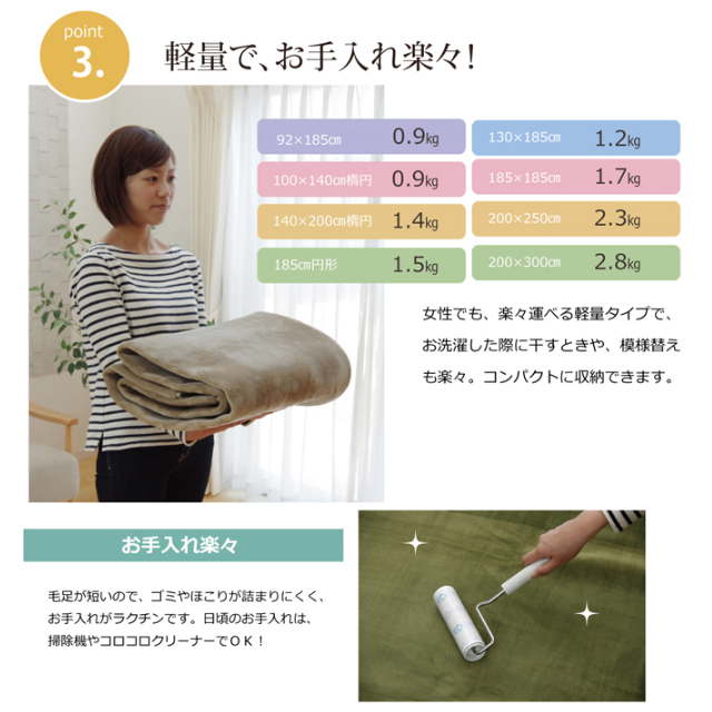 軽量で持ち運びが楽々。薄手で小さく折りたたむことができますので、収納時にも場所を取りません。