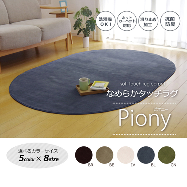 イケヒコ ピオニー 洗える 抗菌防臭 ラグ ホットカーペット対応 140×200cm楕円 グリーン PON140200について