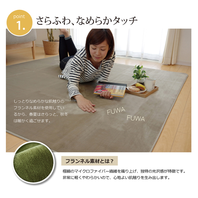 さらっとしていて柔らかい。オールシーズン使用可能なラグです。