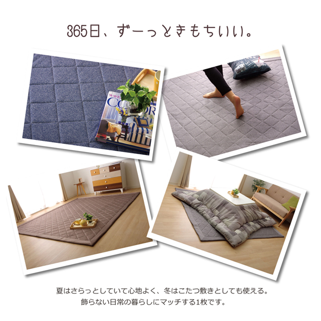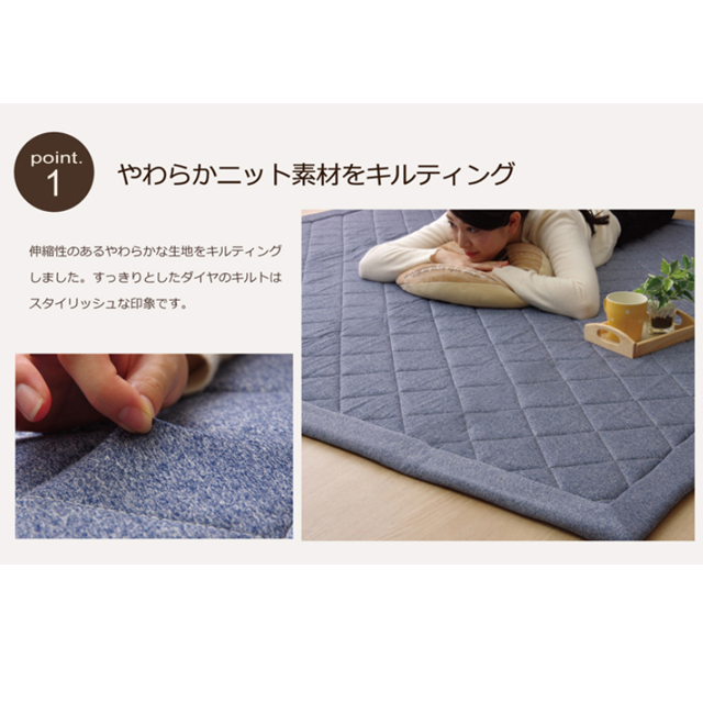 オールシーズン使えるデニム調のキルティングラグカーペット。
