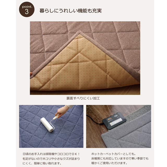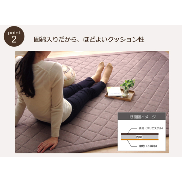表地にしなやかで伸縮性のある生地を使用した柔らかくソフトな風合いのラグです。