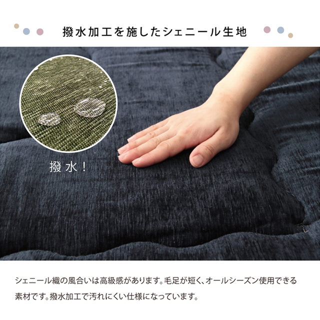 シェニール糸を使用し遊び毛がでにくくお手入れがしやすい。