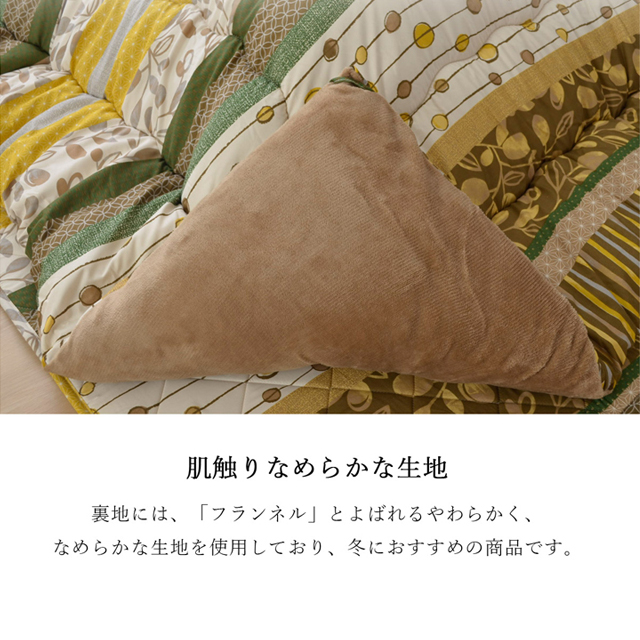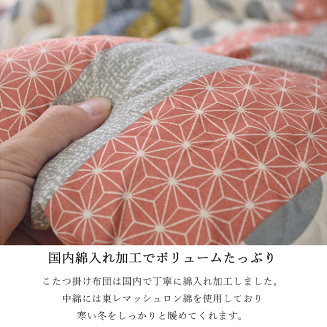 柔らかな肌触りのピーチスキン加工を使用したこたつ布団。