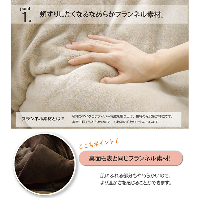 表面も裏面も柔らかく肌触りの良いフランネル素材を使用しています。