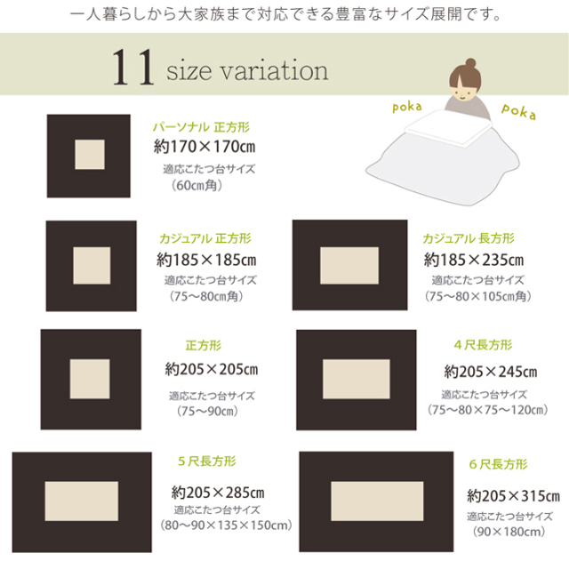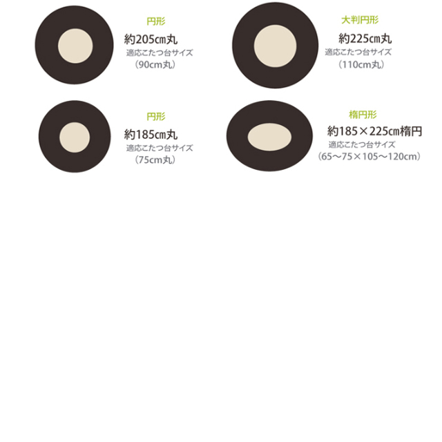 ◆適応サイズ/60~70×90~105cm楕円形のこたつ台に適応