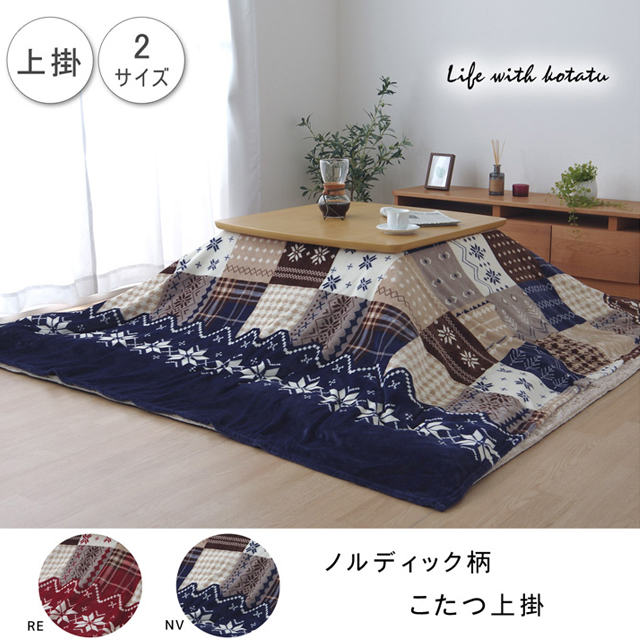 あたたかみのあるノルディック柄のこたつ布団上掛けカバー。