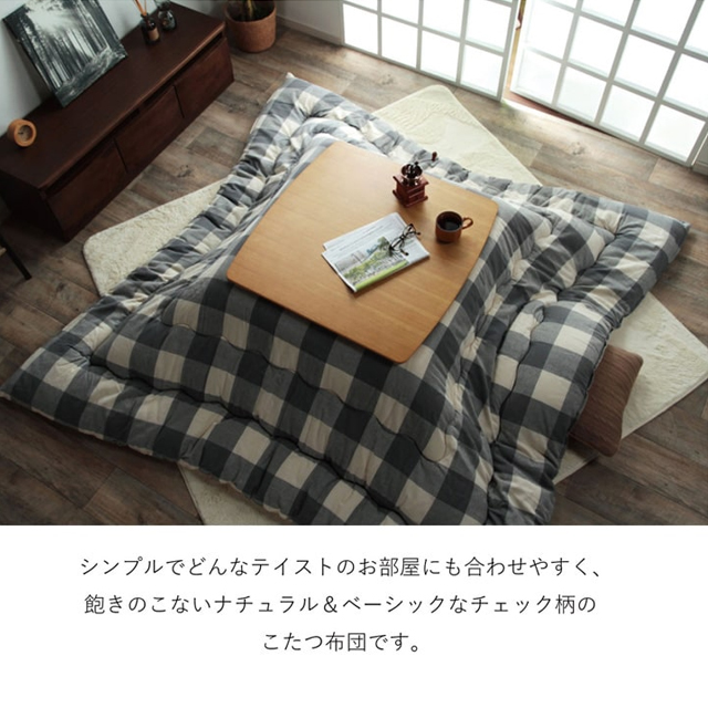 お部屋のテイストを選ばず飽きのこないチェック柄のこたつ布団。