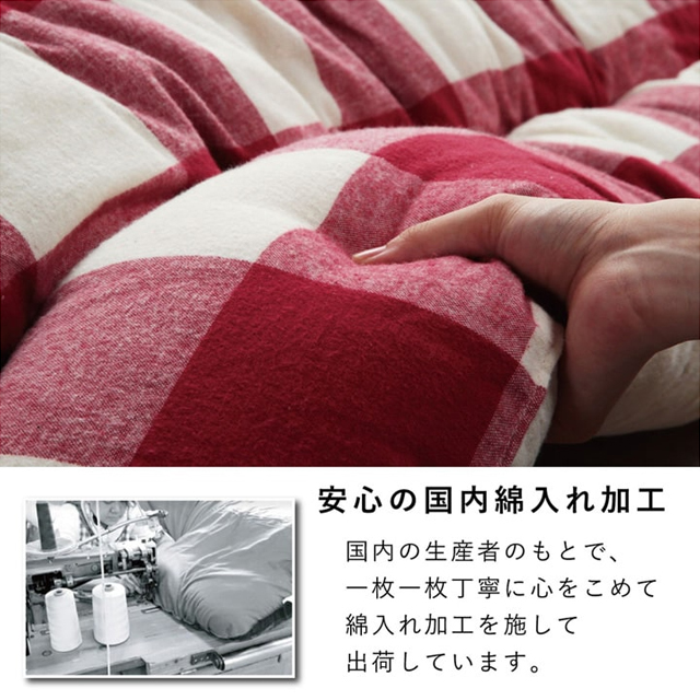 生地にインド綿を使用し、飽きのこないナチュラル&ベーシックなチェック柄のこたつ布団です。