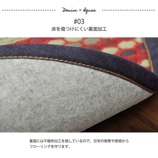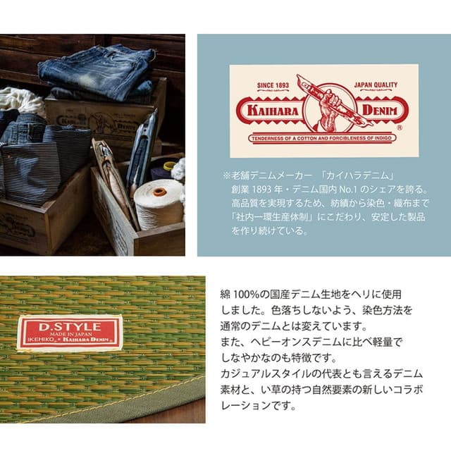 広島県のデニム生地メーカー「カイハラデニム」とコラボした、い草カーペットです。
