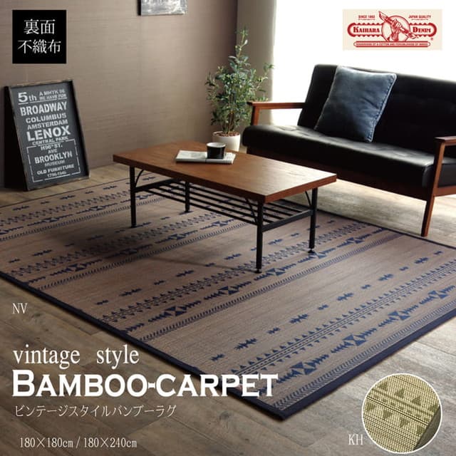 イケヒコ 竹カーペット DXジャガード 約180×180cm ネイビー