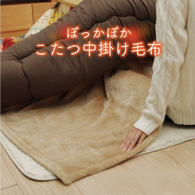 こたつ布団の内側にプラスするだけで保温力がアップする中掛け毛布です。