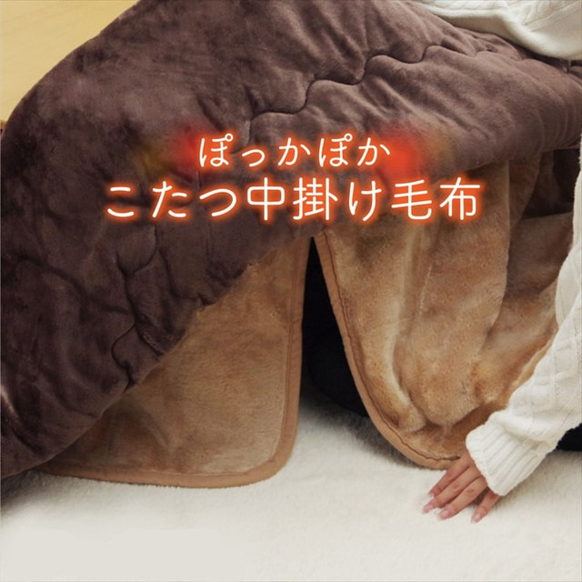 こたつ布団の内側にプラスするだけで保温力がアップする中掛け毛布です。