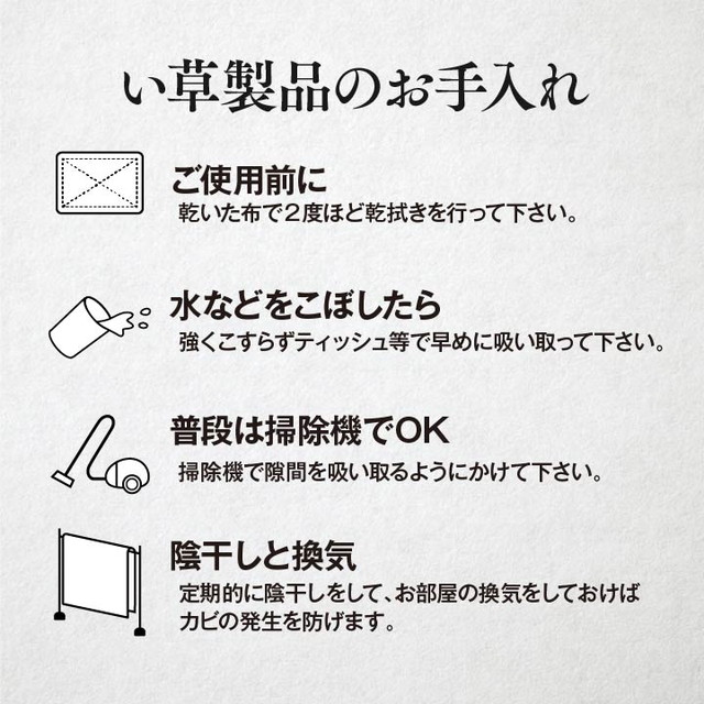 い草には空気の自然浄化作用、湿度の調節作用などがあります。