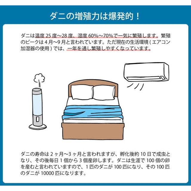 ダニのキチン質に反応し、産んだ卵が孵化しないという効果をもつ特殊なシートを入れています。