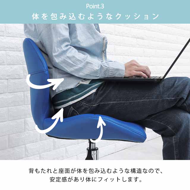 背もたれと座面が体を包み込むような構造なので、安定感がありフィットします。