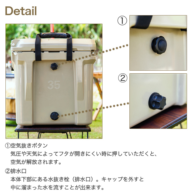 バーベキュー・キャンプ、フィッシング、スポーツなど あらゆるアウトドアシーンにおいて活躍ができる強い味方となってくれるクーラーボックスです。