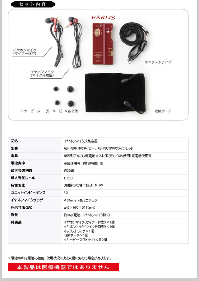 ●本製品は集音器(助聴器)です。補聴器ではありません