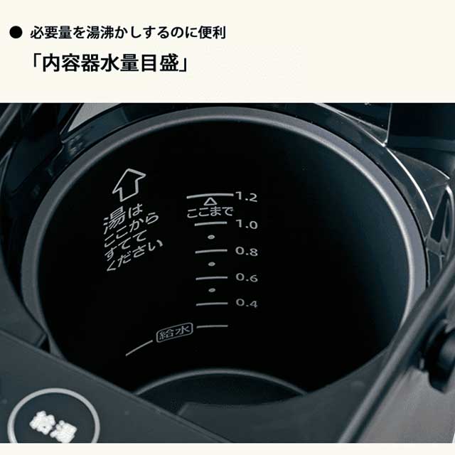 ・必要量を湯沸かしするのに便利「内容器水量目盛」