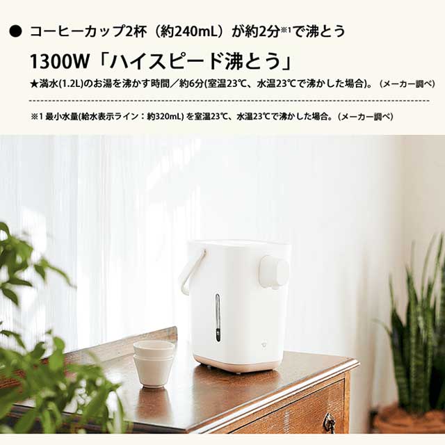 1300Wのハイスピード沸とう!ミルク作りに便利な70℃保温。