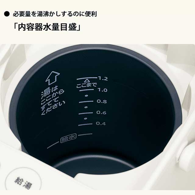 ・必要量を湯沸かしするのに便利「内容器水量目盛」