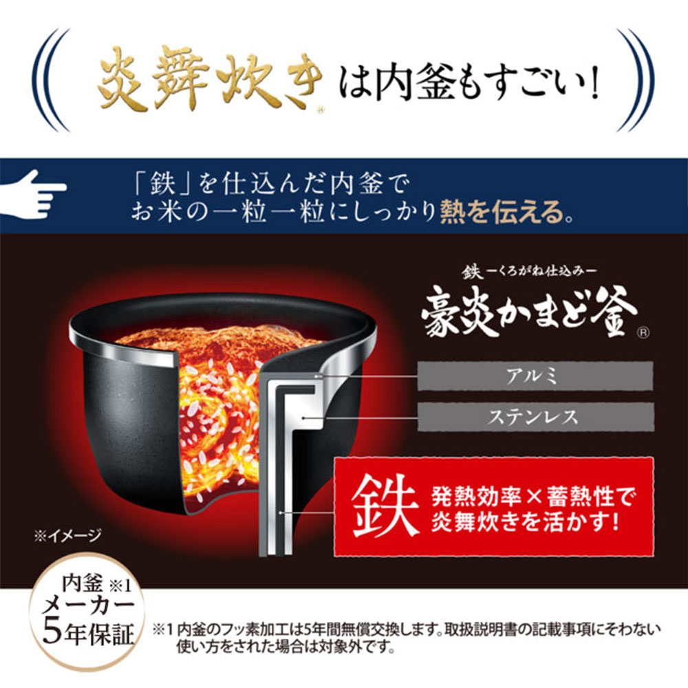 「鉄-くろがね仕込み-豪炎かまど釜」は炎舞炊きの集中加熱を活かす、鉄を仕込んだ内釜です。
