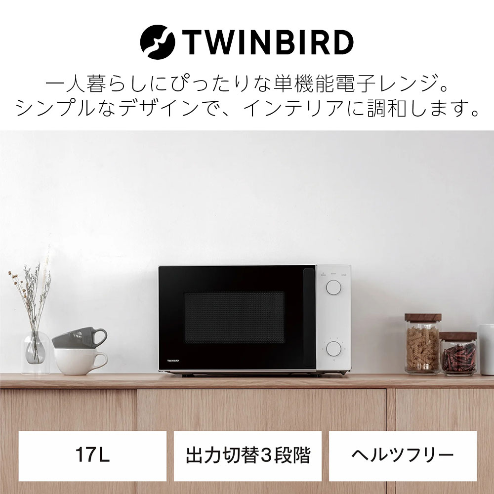 【取寄品】ツインバード 単機能電子レンジ 17L ホワイト DR-D254W