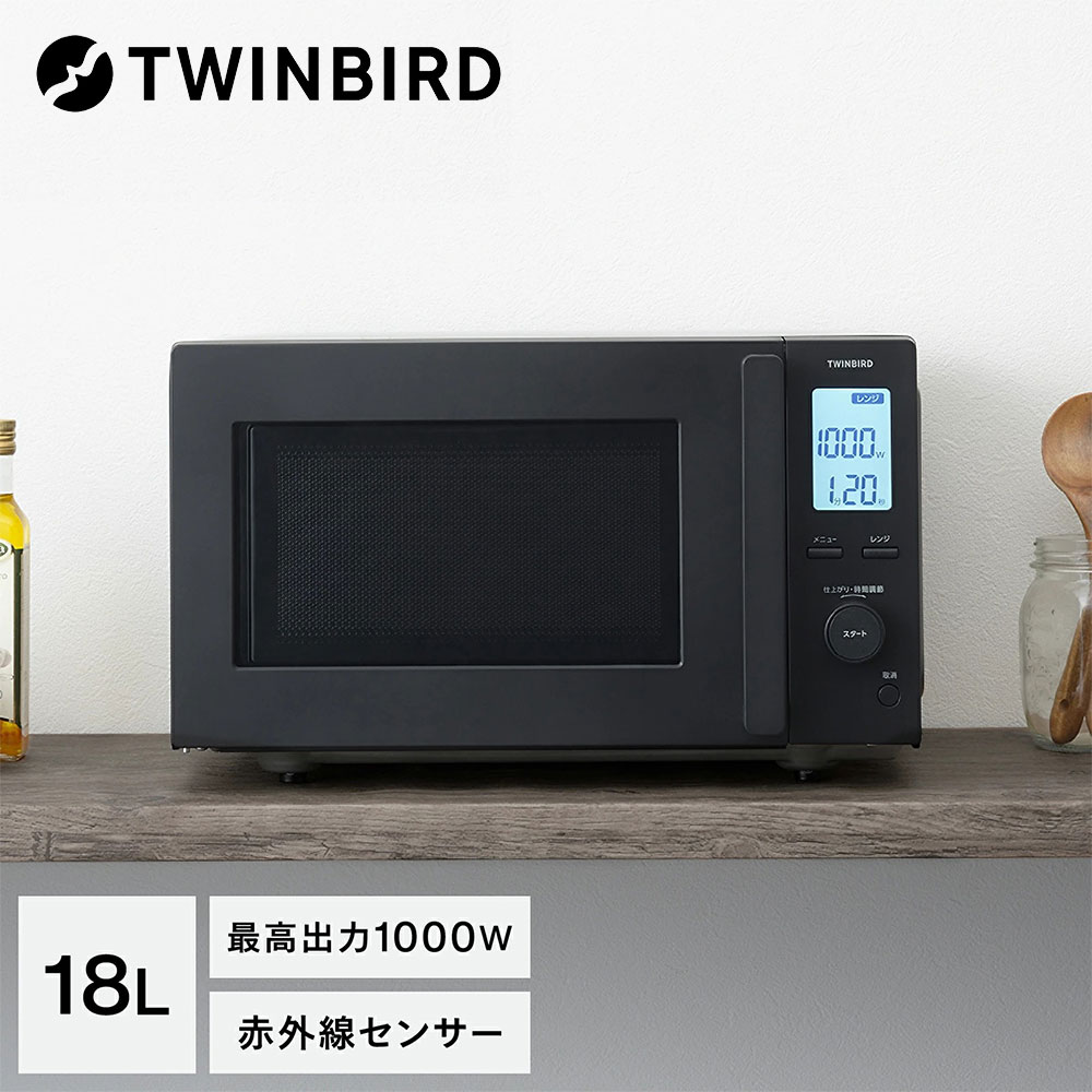 【取寄品】ツインバード センサー付フラット電子レンジ 18L ブラック DR-F282B