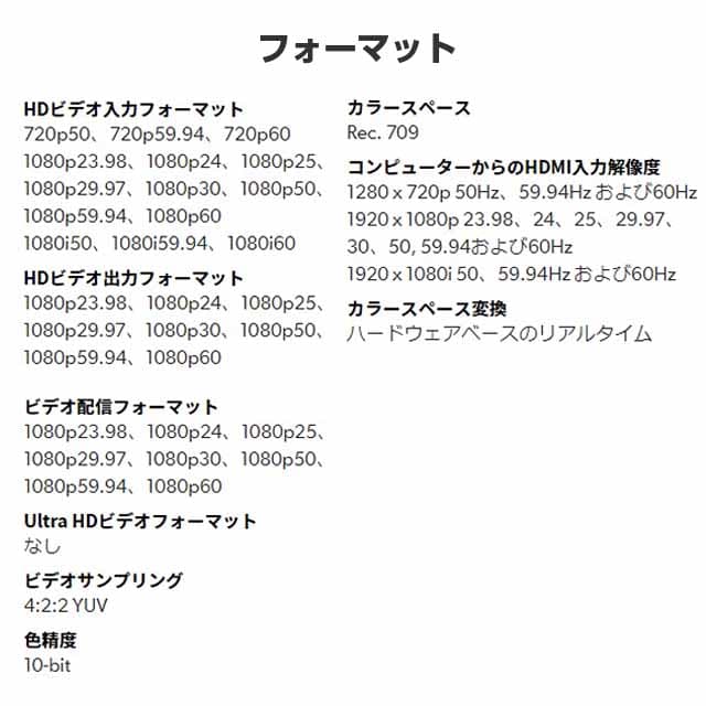 ・オーディオ収録/2chオーディオ入力×6。個別の24?bit 48KHzの.wavファイルとして収録。アナログステレオ入力×2とHDMI 2chエンベデッドオーディオ入力×4