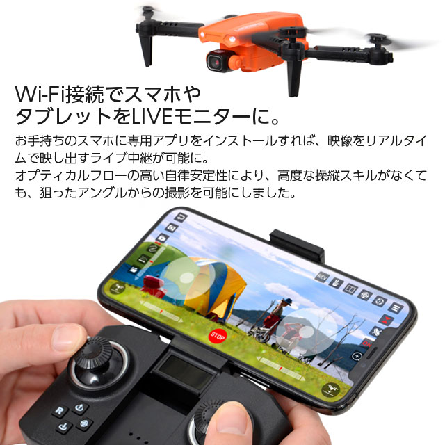 操作を行うまで、機体はその場でホバリングをしているので、ドローン初心者の方にもおすすめです。