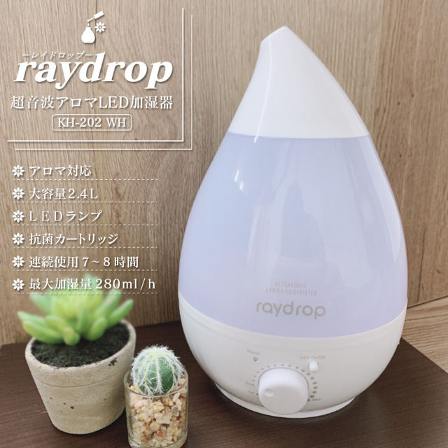 【送料弊社負担】ヒロ・コーポレーション 加湿器 レイドロップ 超音波アロマLED加湿器 2.4L ホワイト KH-202WH【他商品と同時購入不可】