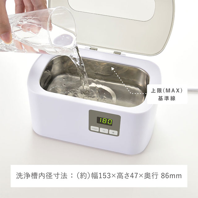 - ◆サイズ/外寸:約W191×D123×H98mm、洗浄槽内寸:約W153×D86×H47mm