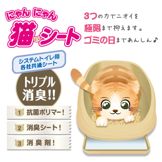 抗菌ポリマー、消臭シート、消臭剤の3つの力で気になる臭いを極限まで抑えます。