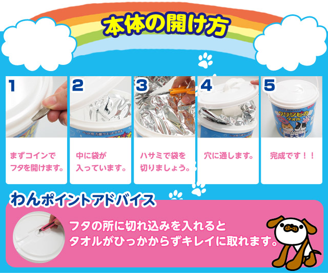 ※ウェットティッシュが取り出しにくい場合は、カッターなどで取り出し口を少し広げてあげるとよりスムーズに取り出せます。