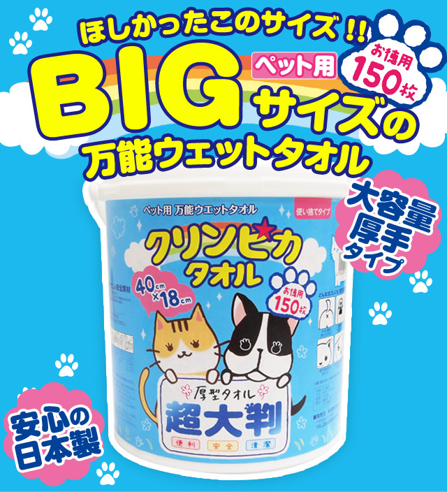 安心の日本製!BIGサイズのペット用万能ウェットタオル!