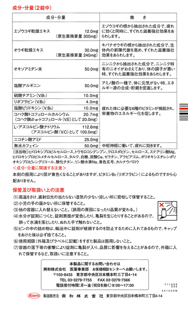 滋養強壮、虚弱体質、肉体疲労・病後の体力低下・食欲不振・栄養障害・発熱性消耗性疾患・妊娠授乳期などの場合の栄養補給
