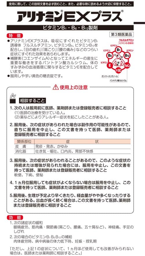 アリナミンEXプラスは、「目の疲れ」「肩こり」「腰の痛み」などのツライ症状にすぐれた効果をあらわします。