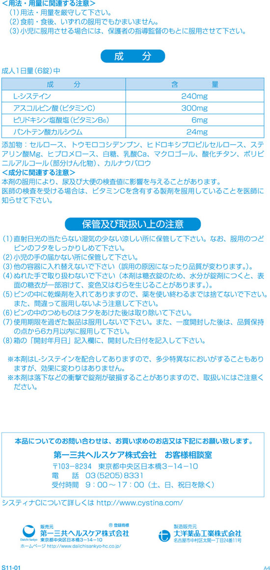 【第3類医薬品】第一三共ヘルスケア システィナC 210錠について