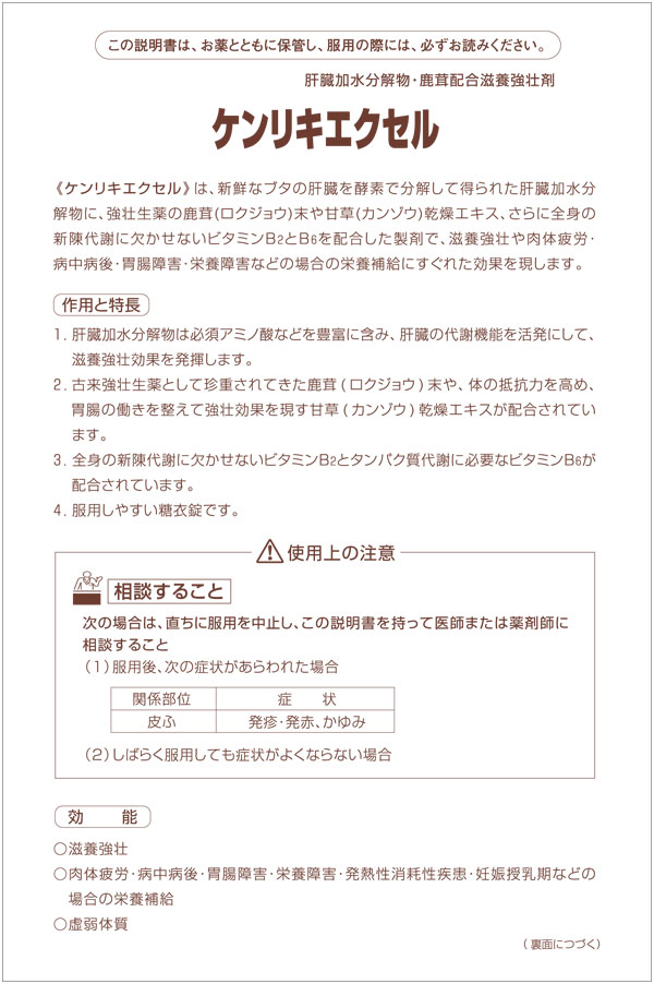 滋養強壮、肉体疲労・病中病後・胃腸障害・栄養障害・発熱性消耗性疾患・妊娠授乳期などの場合の栄養補給、虚弱体質