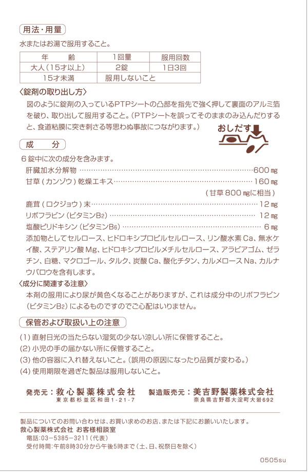 2.古来強壮生薬として珍重されてきた鹿茸(ロクジョウ)末や、体の抵抗力を高め、胃腸の働きを整えて強壮効果を現す甘草(カンゾウ)乾燥エキスが配合されています。