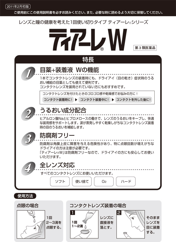 「ティアーレW」は防腐剤フリーなので、ドライアイの方にも安心してお使いいただけます。