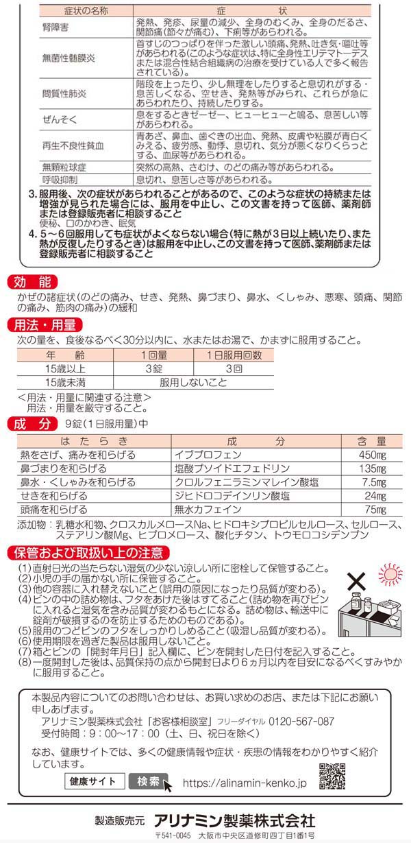 かぜの諸症状(のどの痛み、発熱、鼻づまり、鼻水、悪寒、頭痛、関節の痛み、筋肉の痛み、せき、くしゃみ)の緩和