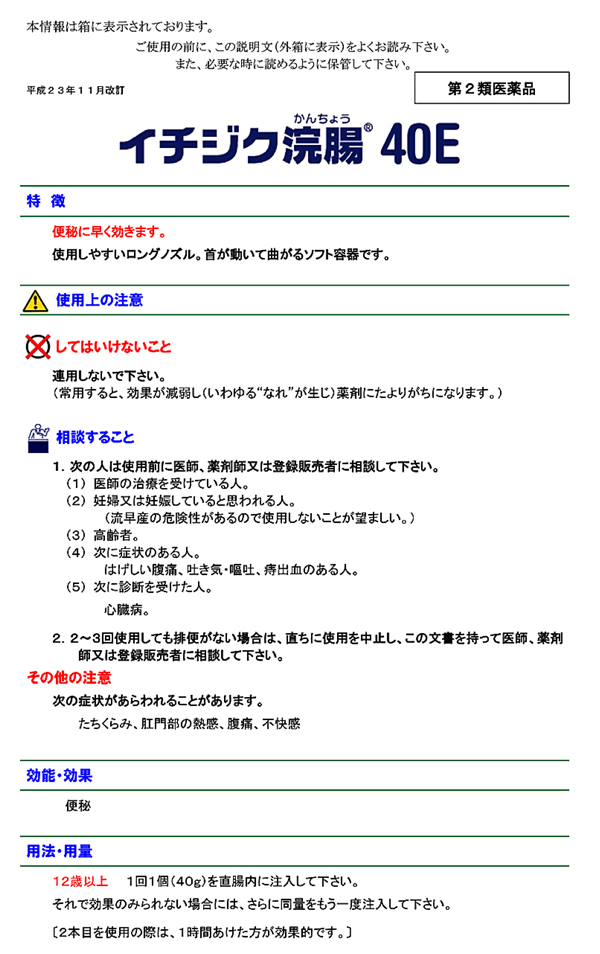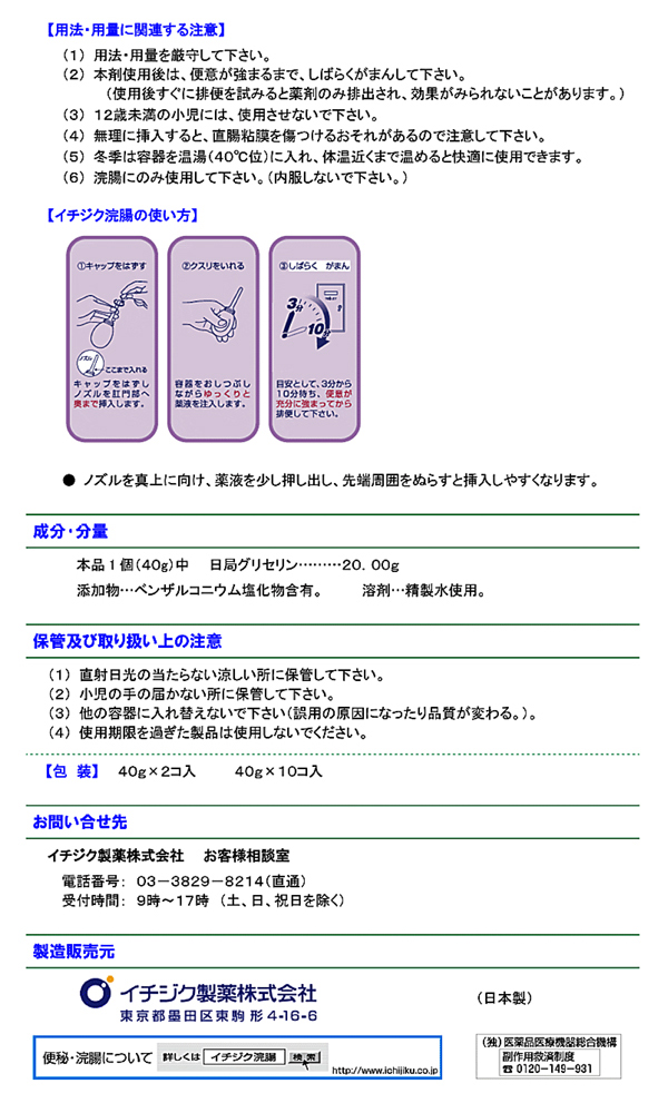 【第2類医薬品】イチジク製薬 イチジク浣腸 40E 40g 10コについて