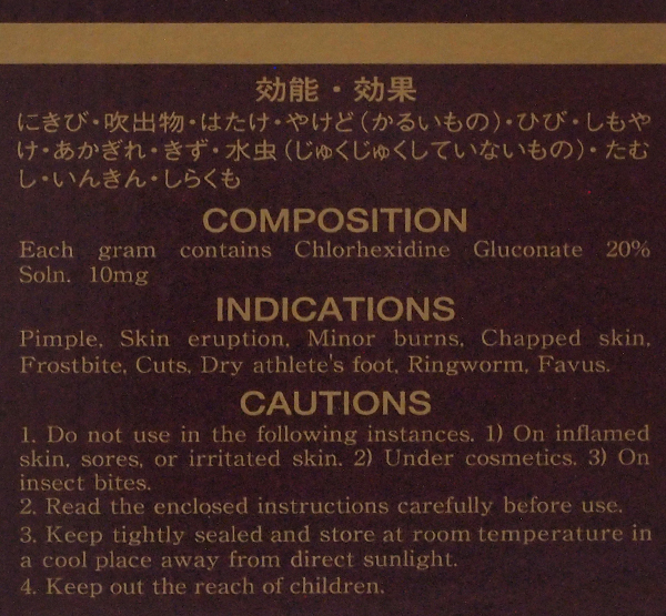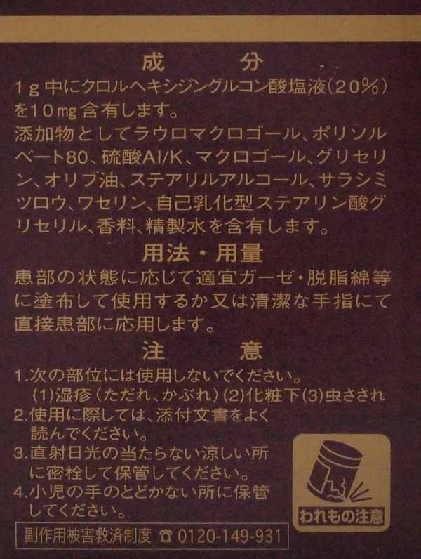 殺菌効果に優れたクロルヘキシジングルコン酸塩配合の皮膚疾患外傷治療剤です。