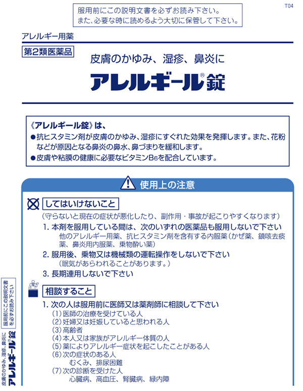 「相談すること」の項目に該当する方は購入前に医者または、薬剤師へご相談ください。