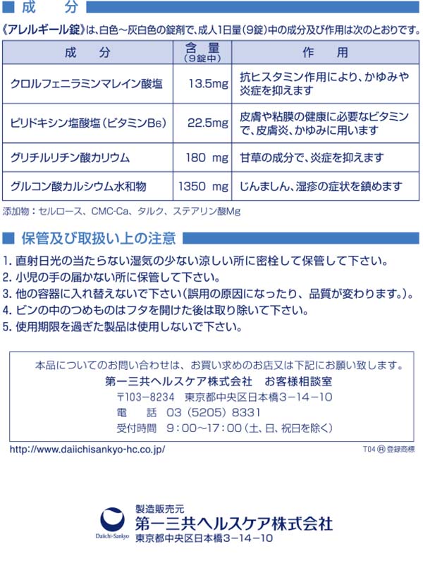 【第2類医薬品】第一三共ヘルスケア アレルギール 錠 110錠について