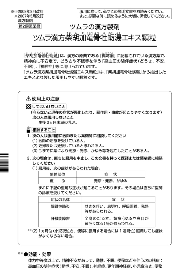 「柴胡加竜骨牡蛎湯」は、漢方の原典である『傷寒論』に記載されている漢方薬で、精神的に不安定で、どうきや不眠等を伴う「高血圧の随伴症状(どうき、不安、不眠)」、「神経症」等に用いられています。