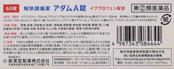 ○アダムA錠は、頭痛・歯痛・生理痛や発熱などに すばやく、すぐれた効きめをあらわします。