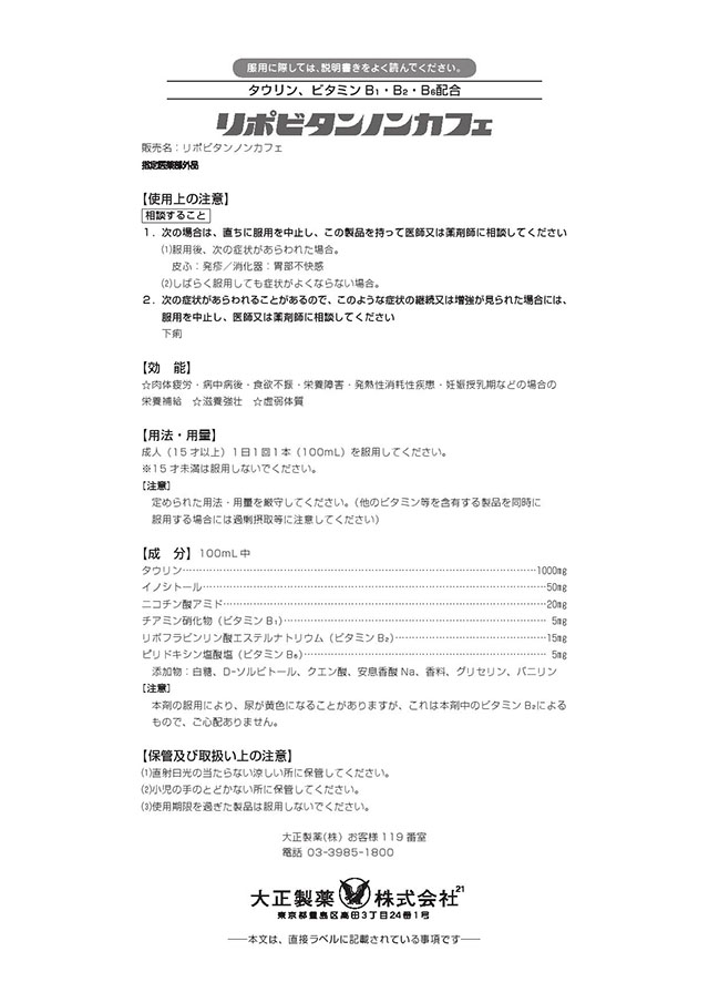 大正製薬 リポビタン ノンカフェ 100ml 10本【指定医薬部外品】について