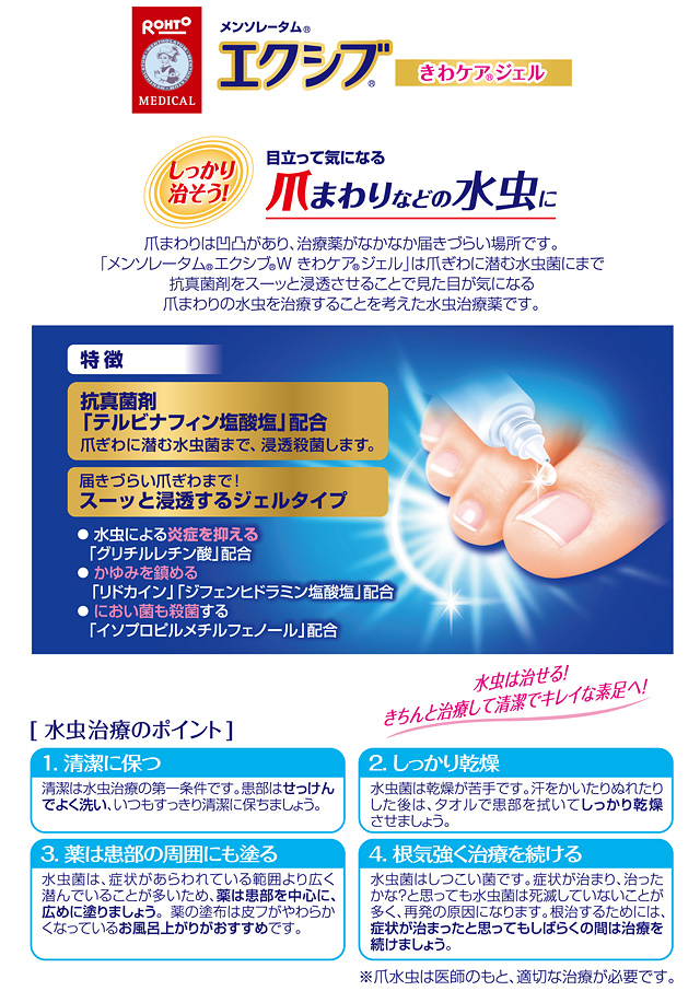 「エクシブ Wきわケアジェル」は、治療薬が届きづらい爪ぎわからも浸透させるジェルタイプです。