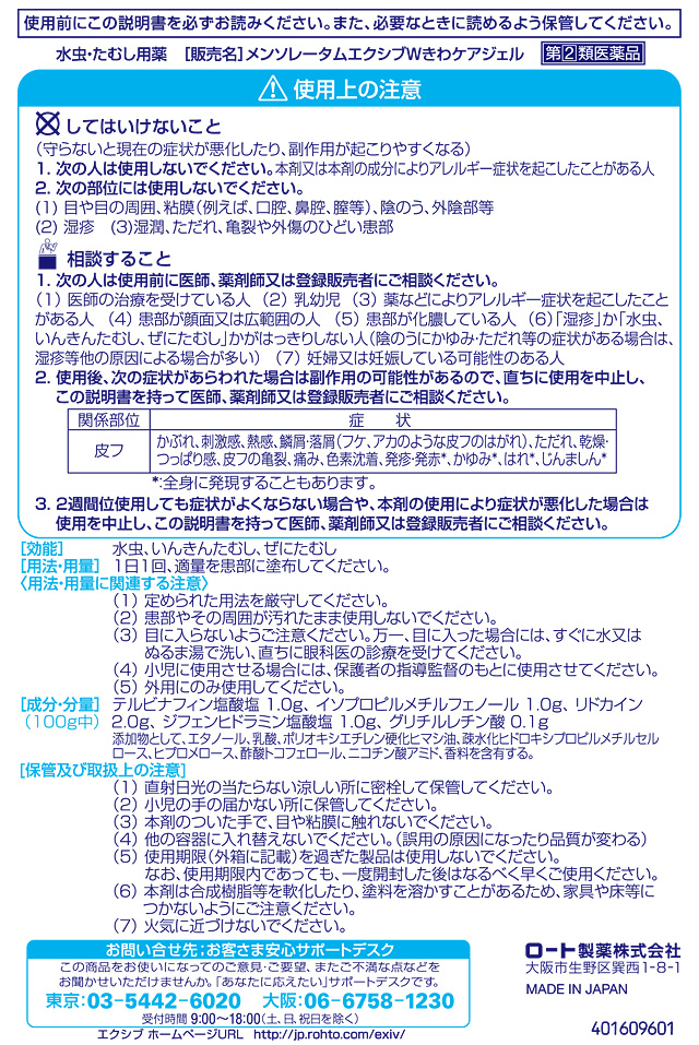 【第(2)類医薬品】メンソレータムエクシブWきわケアジェル 15gについて